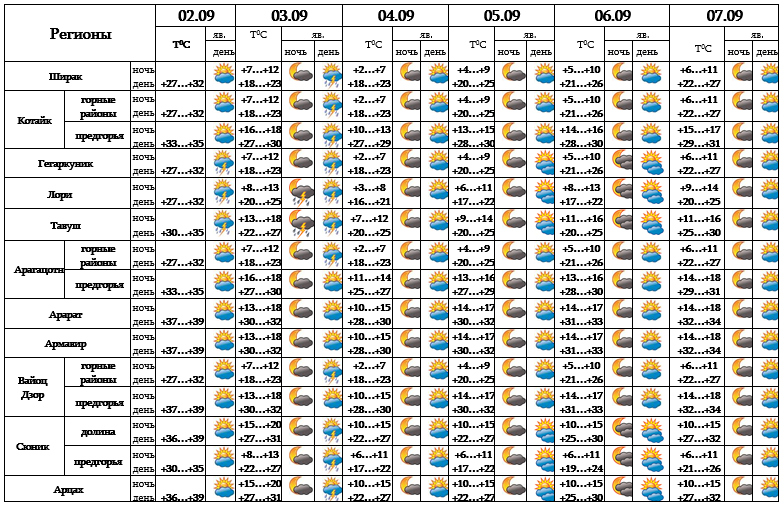В вечерные часы 2-го сентября, 3-го в отдельных регионах ожидается кратковременный дождь с грозой, в отдельных местах возможен град. С 4-7 сентября ожидается погода без осадков.