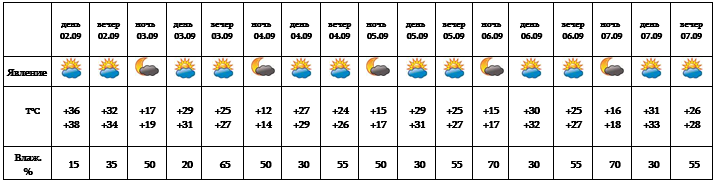 Днем 2-го, с 3-7 сентября ожидается погода без осадков.
