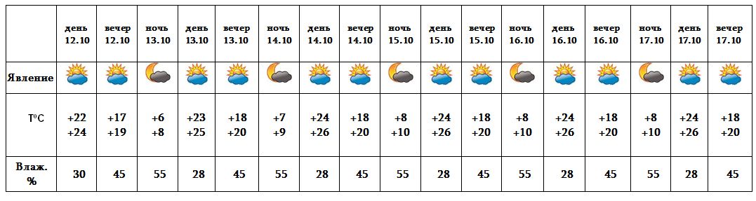 Днем 12-го, с 13-17 октября ожидается погода без осадков.