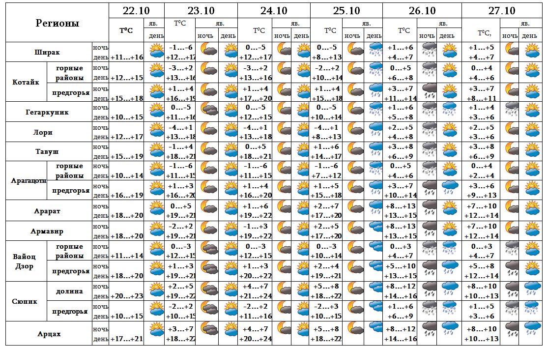 Днем 22-го, с 23-24 октября ожидается погода без осадков. После полудня 25-го, с 26-27 октября в отдельных регионах ожидаются осадки.