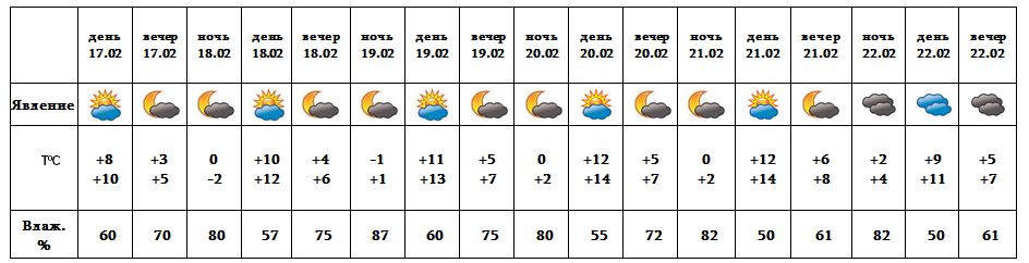 Днем 17-го, с 18-22 февраля ожидается погода без осадков.