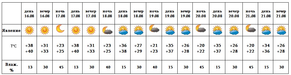 Днем 17-го, с 18-22 августа ожидается погода без осадков. В вечерние часы ожидается усиление ветра с порывами до 13-15 м/с.