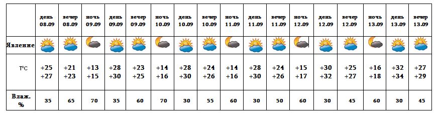 Днем 8-го, с 9-13 сентября ожидается погода без осадков.