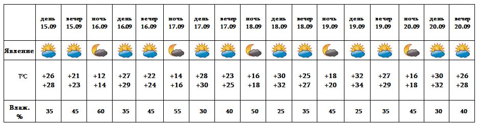 Днем 15-го, с 16-20 сентября ожидается погода без осадков.