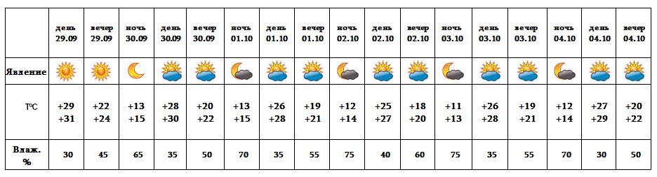 Днем 29-го, 30-го сентября, с 1-4 октября ожидается погода без осадков.