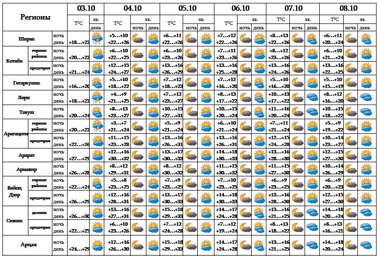 После полудня 3-го октября в отдельных регионах возможен кратковременный дождь с грозой, с 4-8 ожидается погода без осадков.