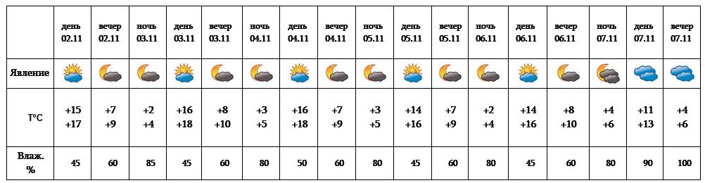 Днем 2-го, с 3-7 ноября ожидается погода без осадков.