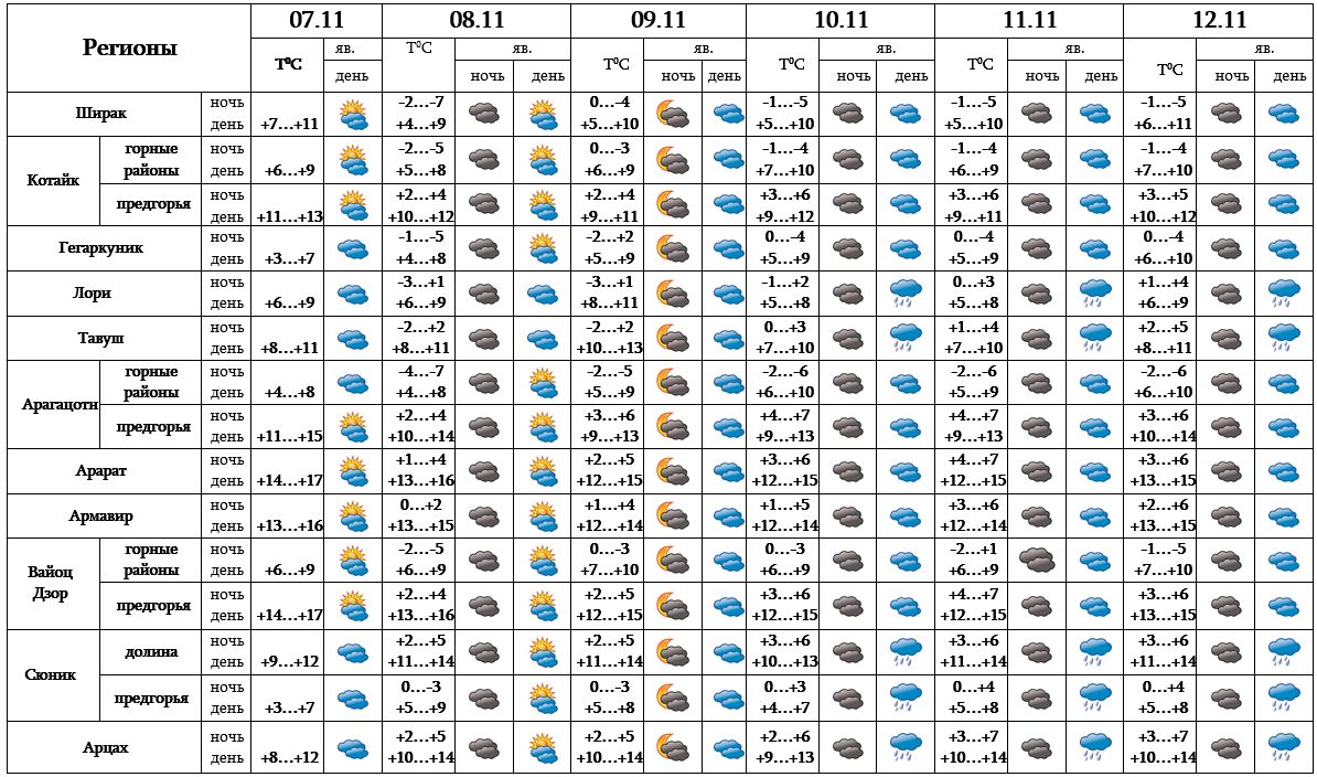Днем 7-го, с 8-9 ноября ожидается погода без осадков. С 10-12 ноября в отдельных регионах ожидаются слабые осадки.