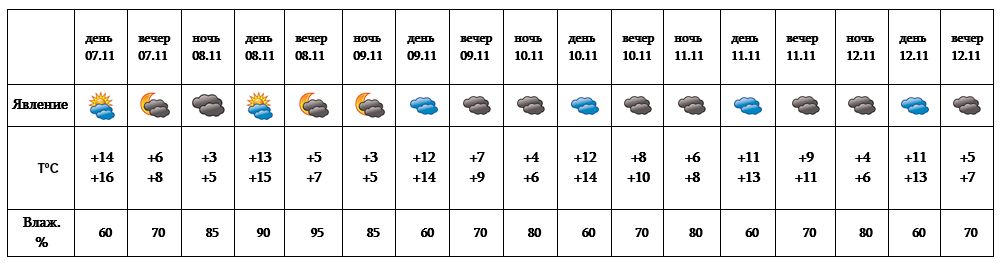 Днем 7-го, с 8-12 ноября ожидается погода без осадков.