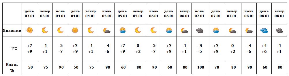 Днем 3-го, с 4-8 января ожидается погода без осадков.