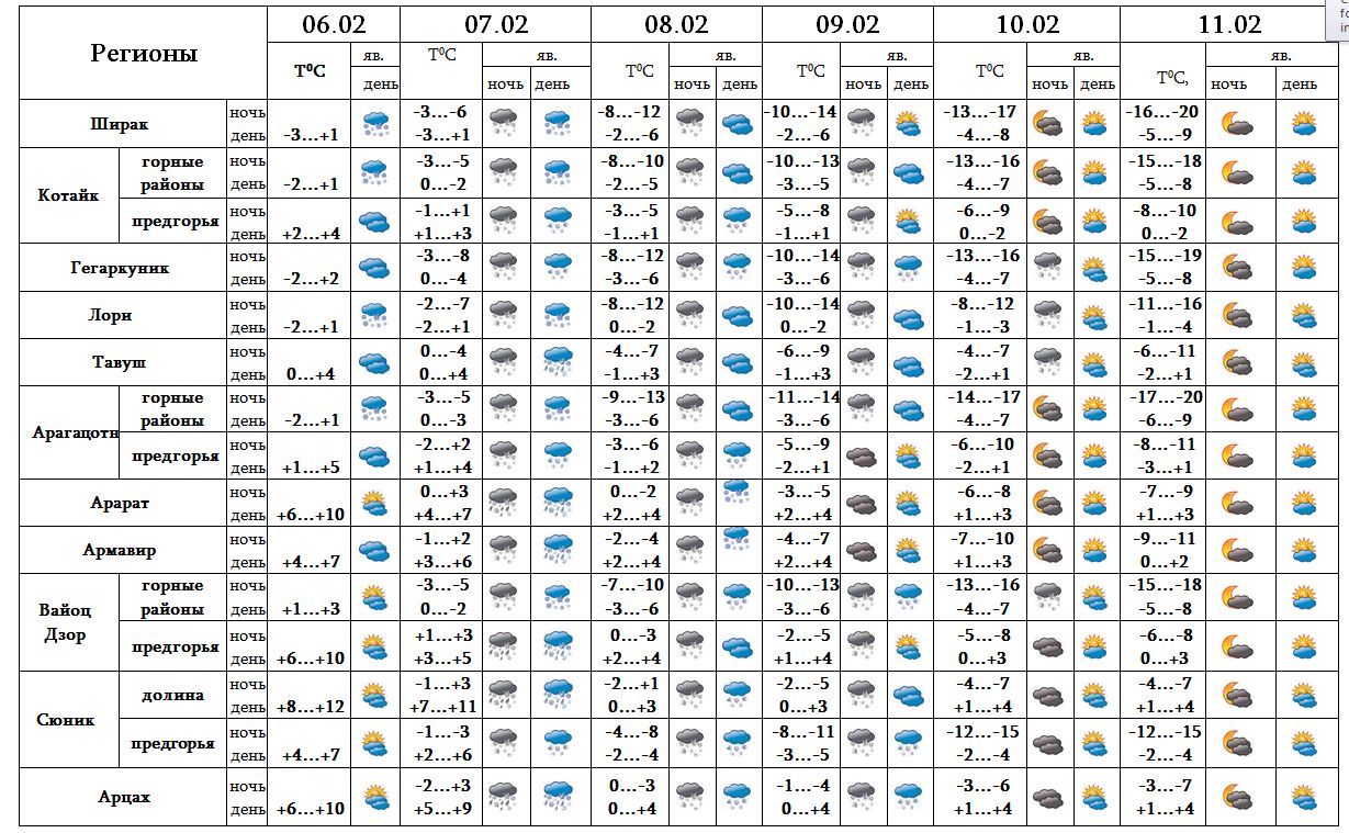 Днем 6-го февраля в отдельных регионах, 7-го в большинстве регионов - снег, в регионах Ширак, Лори, Арагацотн, горных районах Вайоц Дзора - интенсивный.