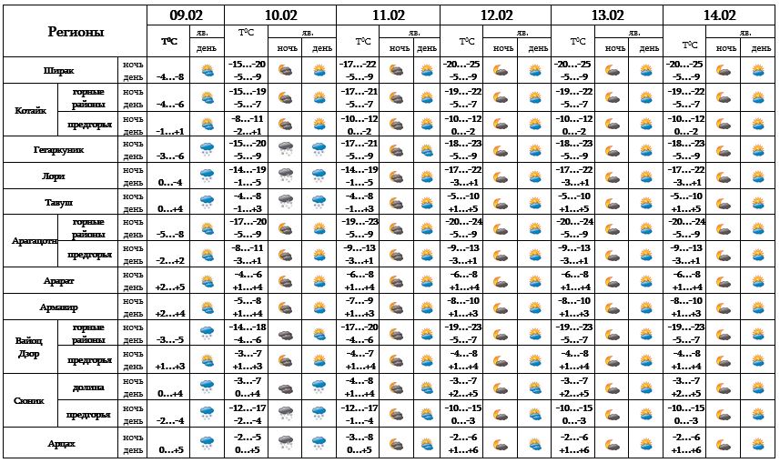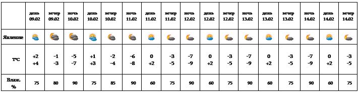 Днем 9-го, 10-го февраля в отдельных регионах ожидается слабый снег и туман, с 11-14 февраля ожидается погода без осадков.
