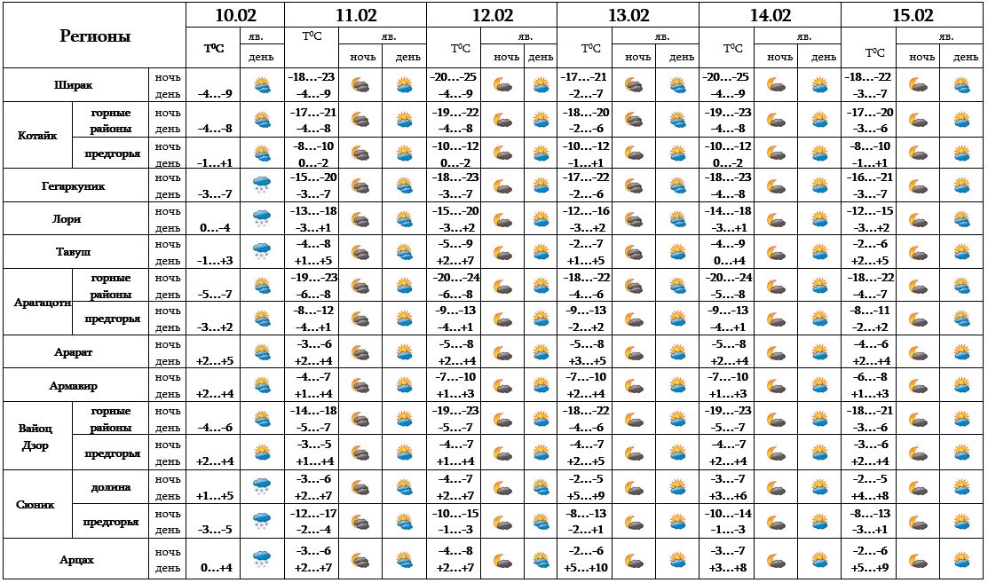 Днем 10-го февраля в отдельных регионах ожидается слабый снег и туман, с 11-15 февраля ожидается погода без осадков.
