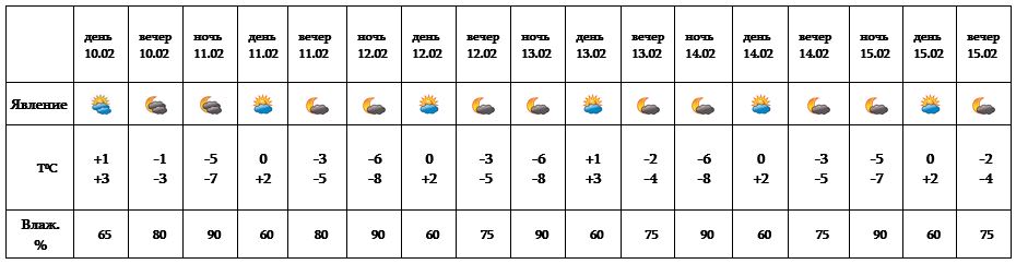 Днем 10-го, с 11-15 февраля ожидается погода без осадков.