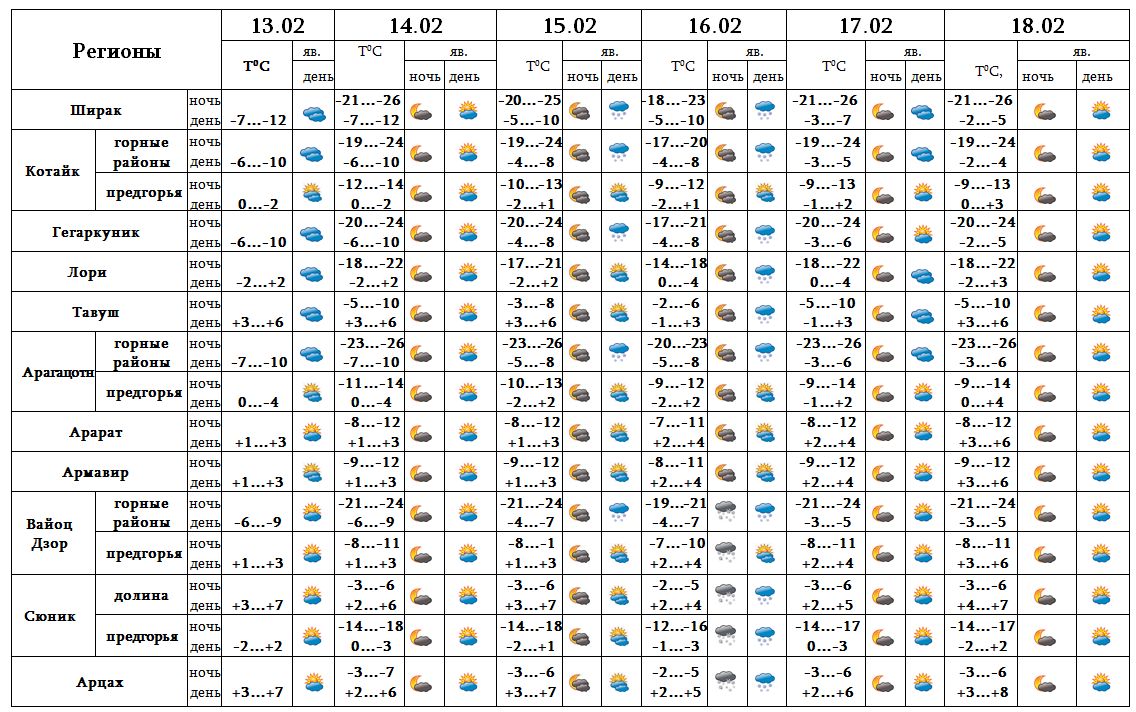 Днем 13-го, с 15-16 февраля в отдельных регионах ожидается небольшой снег. 14-го и с 17-18 февраля ожидается погода без осадков.