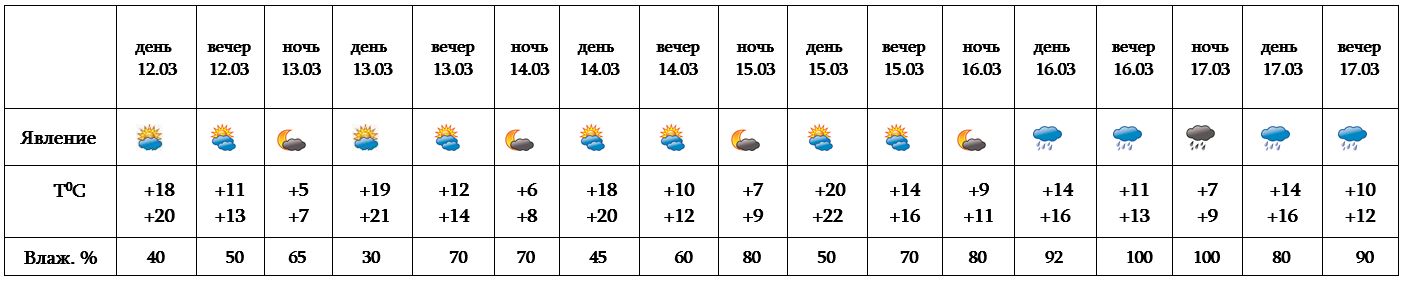 С 13-15 ожидается погода без осадков. С 16-17 марта ожидается дождь.